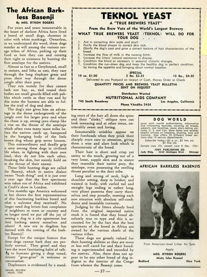 The piece was printed in "Kennel Review" in March 1938 and reports that the first Basenjis arrived in the US five months prior. As is well documented, Mrs Rogers' venture was short-lived. Of her three UK Blean imports, the two bitches, Basashi and Rougie, died without issue within a year, but thankfully the African-bred male Bakuma, although re-homed, resurfaced a number of years later as Phemister's Bois and went on to become a very important sire in the establishment of the breed in the US. He sired the first American champion. This is a wonderful piece of breed history. Thanks to Glen Dymock! Leaf says, "Wear a mask". Mark your calendars! Stay tuned, as we figure out our possibilities, and there is more vaccine,