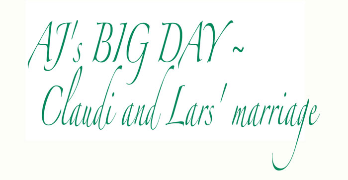 While waiting and listening to the registrar, there was a clack, clack, and the ribbons opened and the rings fell down on the flour! I was red faced searching on the flour for the rings, AND AJ was trying to help.