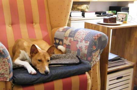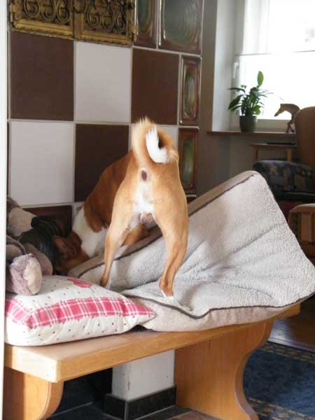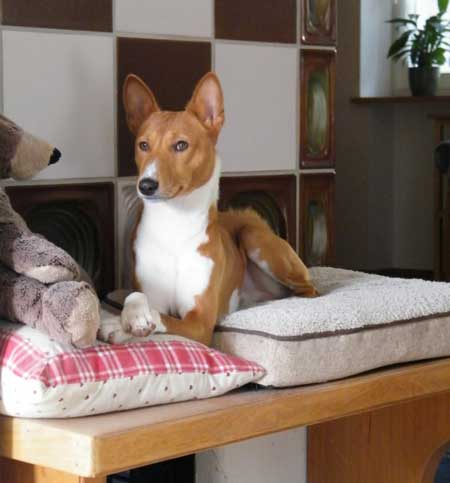 | Dagmar Herhoffer Dear Susan, We love our Basenjis.....whatever they do!! Last summer I had to let my dear Cindy go. She was 12 years old. And so it was. And: Did you ever had a Basenji who hugs everyone?? Making my bed......ready for the photo!! Do I look good ??? My Benji makes me laugh every day. Linda Butterworth