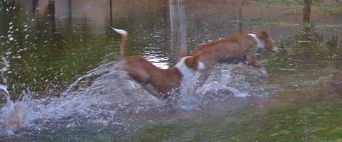 Jan 26th, 2010 I hope it's OK, but I forwarded the newsletter link to all "my" people. Several have written to tell me how much they like it. You outdid yourself this issue, Susan, it's nothing short of fabulous! ..................................................................................................CHRIS MAXKA March 10th, 2010 I really like the on-line newsletter. So many great articles, and all those lovely color photos that showcase the articles so well. I've looked through it several times, and it's a joy......................................….PEGGY PICKJan. 24th, 2010 Thanks for including me! Very impressive…............…JANYCE SELKINApril 3rd, 2010 Update on Florida basenjis My, how time flies when there is so much pee and poop to clean... I can't believe how much time has passed since my last update. So much has changed - and our house now has a revolving door. There has been so many who have come by to help on short notice, to adopt, to drop off, etc. Three of the five-month-olds came back to here for fostering since their foster homes had to leave town for work. It has given me a chance to see how well Jeanetta and Erin did with their charges - it is difficult to tell that they were once wild. One is a little shy and will scream if she thinks she's about to have a negative experience, but she's certainly not the first drama queen I've fostered. The other two are more bold. One is very average basenji - "I'll let you know when I want to be part of things and when I want to do my own thing." All are quite friendly. Afrika, who was initially fairly cautious and distrustful at HCAS, is very outgoing, ready to greet all strangers. His first day at the doggy park seemed as if it was his thousandth. The other fosters are also doing well - I can't wait to see for myself. I wasn't planning on bringing the mature kids in every night (it was supposed to be warm a long time ago and they are in very secure kennel runs) or when it is raining (I was going to build more shelter, but haven't since it has been too cold to leave them out - and it is better for the shy ones to not hide in a den...), but now that I am, I'm kind of glad I was forced to do it. It has forced me to jump right into working with them in a way that has just the right amount of casual nature to it. As a result, they are already crate-trained. Even though they were stuck inside in crates for a couple of days a week or so ago because of downpours, they kept them clean! I let them go out for play/potty breaks several times a day between downpours. They now realize that they won't be stuck in them forever and whine if the weather is cooling or getting humid and I haven't brought them in yet. They need less and less direction to go to the right spot - in or out. The level of interaction has also given me an opportunity to see who gets along with whom and what or who will make them relax. The mature males must be kept separated at this time (they show a bit of male aggression through the fences towards each other still, though all get along with the older male pup, Hogan), but everyone else gets along. I have had everyone else out together to play - cycling the three males with the group to give everyone a chance to have some fun. They seem to like to come in to their cozy crates where the rain is kept far from their beds and heat lamps are available when it gets cold - I can't believe how long this cold weather has persisted. I feel better knowing that they are in. I think it will also help them to make the transition to indoor spoiled b more quickly. I don't think they will find our b's so strange once they get a taste of life on cushions... Kato (Big Daddy) is a major couch potato - I can see him laying on a couch with a remote control while someone spoon-feeds him puréed chicken. His biggest effort here was to grouch at another adult male. I find it kind of odd that he could come from such a feral life yet appear so lazy. He has already moved onto another foster home who has decided to adopt him! One of the 3 mo. old pups went with him - the pup was adopted as well. I have a couple of cute pictures with the two together - and both enjoying the furniture in their new home... Kenya is the most active and needy of the bunch, though he is settling down and is into our routine. He has the most difficulty with having to live with boundaries and someone else's rules. It is amazing that a feral dog from such a large pack is so similar in behavior to a recent "city" foster I had. He plays quite well with Hogan and Chiku. The play goes a long way to keeping him happy. He is very interested in nosing all over me - touch, touch, touch - but is leary about being touched by a human. I would be too, if all I ever had was needle pricks when touched... He does give me invitations to play quite regularly. He is apparently fairly attached to one of the older R&W females, Amoré, and/or the smaller tri-colors. He is much quieter and more content with his boundaries when he is in a pen next to them. Amoré is the first that I spent time with when they were still all at Hillsborough. She was the third mom that had stopped producing milk just after the pack was confiscated from the field. She looked so pathetic - I felt she might shut down completely, stop eating and die, so I picked her as the first one with whom to spend time. She lets me massage her and does relax with the attention. She is very submissive and needs to have her confidence boosted. It is great to see her play and enjoy life. Hogan and Chiku are a pair of very cute older pups that are blossoming nicely now that they are out of jail. My image of Hogan at HCAS was a growling cat. Chiku was so frightened that she cowered in a water dish just to get as far from everyone as possible. Petite Chiku is still the more timid of the two, though she will come up to me or Chris to investigate when they are in the play area. Hogan is becoming more outgoing with us every day and