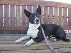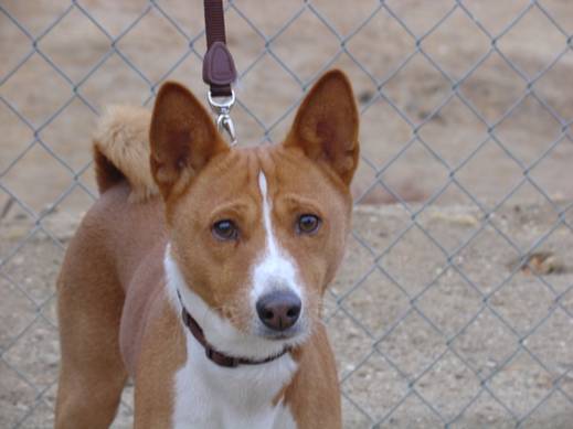 This is Lady and her pictures don’t do justice to her personality. Lady is indeed a lady of about 18 months whose owner never claimed her from a pound in southern California. It is hard to imagine a more perfect example of Basenji and Corgi. As loaded as we and all rescues are now due to the economy, letting this incredibly sweet young gal be killed in a shelter would have been unforgivable. A young couple with a Basenji mix spotted Lady, bailed her out, and kept her until they could bring her here. Some very lucky family is going to end up with one of the best pooches ever. She is a bit timid with strangers but when she opens up, there is no way you can be around her without smiling or laughing as she bops around the yard. She even does the Basenji 500.