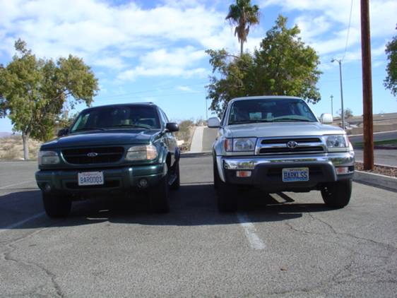 We met them in Barstow and had to take pictures of the two cars side by side. Looks like a Basenji convention with “BAROOOS” and “BARKLSS” for license plates.