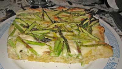 This focaccia is a true revelation. A truly original way to enhance the asparagus and to taste a beciamella, a very unusual seasoning for a focaccia. Great!