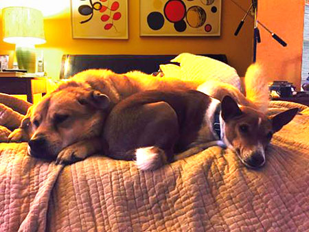 Kris King If they could talk: "Don't even think about making this bed." Karen Christensen Laser used to get Selket to give up her prime real estate in my lap by running to the door as if someone were there -- then he'd spring back to claim the spot! Tamara Allen From the intake form for Gloria's holistic health appointment on Friday. Describe a typical daily schedule for your pet: Wait impatiently for biped to come and feed her in her room. 6 am, get a pill. Wait for said biped to create suitable breakfast. Eat at 6:30 am. Finish and go poop and pee about 7 am. Keep woman biped company while she drinks coffee on the couch until 7:15 am. Nap on the couch until 8 am. Go wander in fenced canyon area with the two hoodlum basenji housemates until 8:30 am. Male biped plays the piano or organ, so she sleeps on the couch and takes a nap. Get up around 9:30 am and see if the food bowl has been filled with a suitable treat. Be disappointed its still empty, so go outside and see if its warm enough in the sun - consider peeing and pooping if the mood strikes. Come back in and find dog bed or couch to snooze. At noon get up and get treats as male biped comes in to make lunch. Check out the back yard - have a little drink of water - go back to napping. Get up about 1 PM for pill/canned food treat. Look for sunny spot to nap. 3 PM go out and pee again - check that food bowl for treats again. Get disappointed. Come back in. 4 PM go out with hoodlums and male biped to take a lap around the fenced canyon area - come back in and demand to go back to room to wait impatiently for dinner. Dinner at 5:30 PM. After several trips outside flapping the dog door to show the bipeds that I am waiting for my dinner. Food arrives at 5:30 and it is glorious. Back out with the bipeds as they make dinner - supervise kitchen activities. Supervise bipeds eating their food - try to give sad melted chocolate eyes at them to see if that will get a treat or three. 7 PM on the couch with bipeds to lap nap. Up at 8 to go pee. Ask to go to room at 8:30 - Wait impatiently for bedtime pill/treat - whack the dog door a dozen times more to show humans I am waiting. 9 PM get the horrid flovent mask - then a final treat/pill before bed. Get up around 3 am to pee and poop again. Then start again... Jackie Dering Luke didn't understand when I told him that the two legged creatures ran the house. Erin Fogarty Happy second birthday to Skipper!