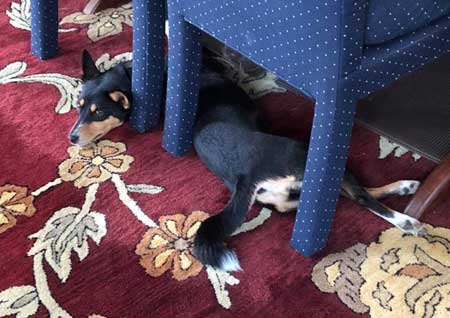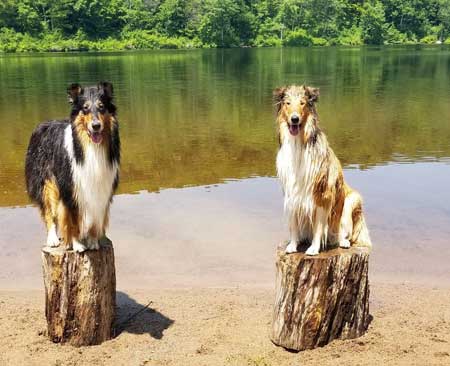 Debby Mayer & Sizzle Sizzle: If I sit here long enugh, this fan will turn into a heater ....... Sizzle: Debby, are you sad? You look sad. Debby: Sizzle, I ate my first apple of the season. I put the hanging plants into the compost. I stored my Panama hats, switched from percale to jersey sheets, and I'm wearing a turtleneck, for the next seven months. You'd be sad too, but you have a fur coat. S: I like those jersey sheets. Jackie Dering Harley is either a magic dog or the queen of coincidences. The bottom of my surgery foot has been bothering me. so I had a doctor appointment scheduled for yesterday, Friday, to get some suggestions from him before my trip to Italy. The day before the appointment on Thursday she comes up with a metatarsal pad that I lost about two years ago and gives it to me. It was just what the doctor went on to recommend. How does she do this stuff? Where the heck was it? Luke being a perfect gentleman - waiting for Jackie and Harley. Noreen Bennett Here is my big brag for the weekend...ready for it? I was at an agility trial and had to use the restroom and had Chapter with me. This particular site has regular stall restrooms but also has a single room that you can take the dog in with you. In we went, and Chapter started looking around and put her nose up to figure out what that the thing was on the wall. Well, it was a hand dryer -and yup, it was motion sensored. So when her nose went up, it turned on! VROOOM! air blowing out! She barely blinked...one step back and it shut off just as quickly as it started. And that was that...she paid no attention to it. Good solid temperaments --priceless!