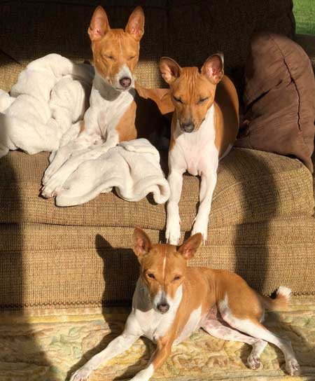 Dotty Cohen passed at 90 years old on 15 October. She was a founding member of our club. Dotty was a true basenji person, having ridiculously spoiled basenjis upwards of 50 years. She had her Brucie for over 15 years, and when he passed she got Apu Awfully Quiet (Fuff, or Fula) in 1982. Then she got Apu's Presumptuos Poet, and when they both passed at around 16 years each, even though she said no more dogs, we rescued a b/w from Georgia, her Jazzie. Jazzie lived a long and glorious life. Here's some words from Dotty: We’ve had JJ for 4 years now; hard to believe. I still have your note titled “Safe at home in Brooklyn,” written after we rescued her. It really seems true that she looks at us, still, deeply, with her golden eyes, and lets me know she is thankful. Have to tell you how she conned me into taking her back downstairs. We had come back up, after she had her walk, sat in the sun, and did her business. JJ just glared at me with her golden eyes, and would not let up. I thought she had a need to go, so back down we went. Nothing to it, she just wanted to go back out, and had to have HER way! Thought you might like the hear what this little lady has been doing to make us smile and sometimes grin and bear it. Lately she thinks that she's a mule (not a jackass, just a mule). I take her out for a walk several times a day and she has her spots all picked out for whatever time of day it is (morning means around the corner to watch the traffic on the highway and the boats on the water, afternoon means around the block or further and evening means going up to the corner to watch the cars going past). She doesn't vary at all. If it's raining, forget it. When it becomes absolutely necessary, she goes right in front of the door and pulls back immediately. While Sam was away I tried to see what I could do to get her into a different routine. She comes up from her walk after watching the cars for a while and follows two commands (doesn't vary on that either). First, "go and take a drink" and immediately after "Jazzie, go Mommy bed, go sleep!" If I say go to bed and go to sleep, she doesn't move. Guess that's also "selective hearing". P.S. She surprised both of when Sam came home from the nursing home. She didn't ignore him like she usually does when we come home from a trip. She actually walked right over to him and stayed by his side. Now she won't let him alone, but when she's on his bed with him, she won't go any further than near his thigh. Don't ask why, we can't figure it out, but she takes his robe and makes a pillow out of it. She just came running into the kitchen, smelled some soup and crackers (and had to have a little), but doesn't move a body to get it. Just waits!! Sittin’ on the Corner… Jazz likes to go out in the evening, but where I live (Bay Ridge, Brooklyn) there is a lot of traffic at all times and so she walks up to the corner and just sits there to watch the cars go by. She would sit there for a half hour if I would let her. Does this every night ! Needless to say, she won't do this in the rain, just runs back to the house.Sue: Thought that you would get a laugh out of this. For all the years that we have been living with these kids of ours, this one does some of the darndest things. I was sitting on the couch with my constant companion (Jazz, not Sam) and started playing with her front feet (hands to you) and she quietly hit me back. Next thing I knew, she reared up on her little tush, straight up and kept hitting me with both feet and had me playing with her the same way like a kitten playing with a dangling string. Maybe you've seen this behavior before, but we never have, not in all the 35 years that we lived with these little people. By the way, she still loves to sit on the corner and watch the ocean, especially when it's windy and she can watch the whitecaps. Still watches the cars along the Belt but doesn't like getting dressed to go out. (Maybe you can make some sense out of this---it's midnight and I'm going to bed!) Love always, Dotty