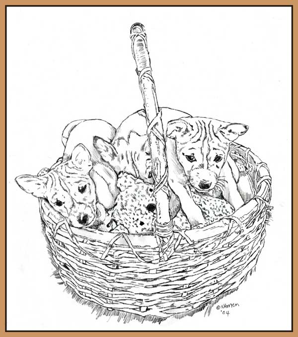 NEW RAFFLE for 2010/drawing by Susan Kamen Marsicano This year I’ve donated an original pencil drawing which was the basis for a cover of the BCOA roster. It is 11” X 14” The raffle will be drawn at the RVW Club Match on July 11th, in Scotia, NY. All proceeds go to the Basenji Health Endowment. Tickets will be 6 for $10. Buy tickets now, and buy more later. Can you PLEASE help and sell tickets? |