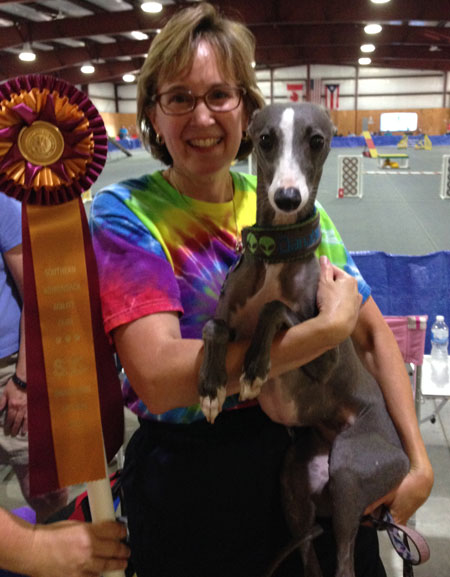Jackie Dering's Harley got her JC title + her QC. Kenset Sud-nly Mystic Harlequin JC.