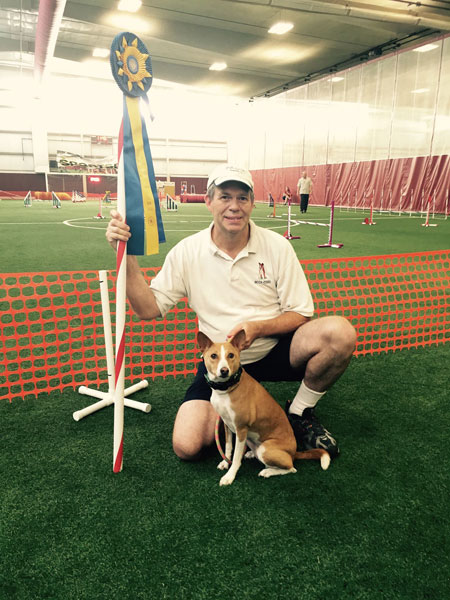 Susan Marsicano’s Fiddle got her RN title. She got a FIRST in AKC Excellent Jumpers with Weaves agility. CH Apu Sweet Baby James RN OA OAJ XF FCh ORC GRC MVB.