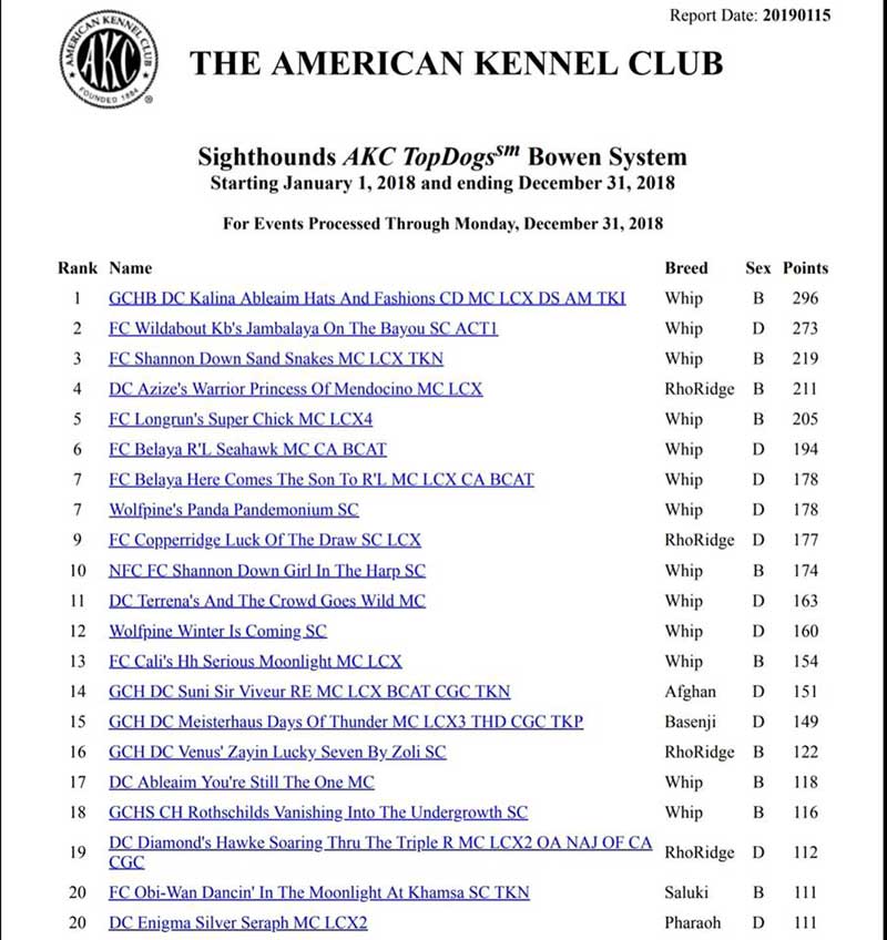 19 GCH DC Emerant Makindu Heez Got Game BN RI MC LCX NAP CA TKA D 19