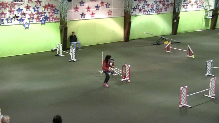 The rest of the course was a piece of cake. Holster flew over hurdles. A slow-motion video shows him weaving through the poles like a needle through cloth. He finished in 35.1 seconds with no faults.