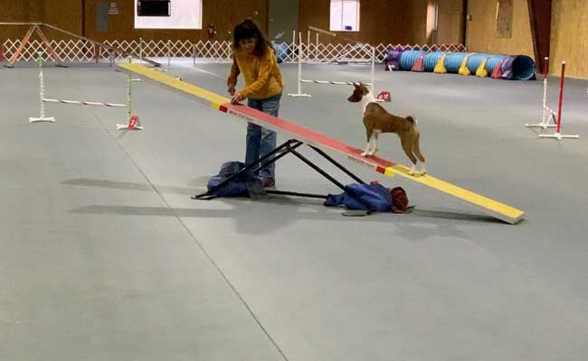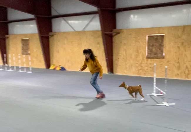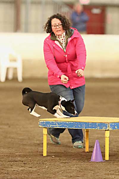 Oakley is the first ever basenji to earn ANDD. Advanced Novice Draft Dog.