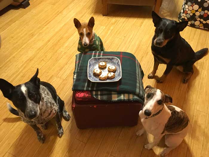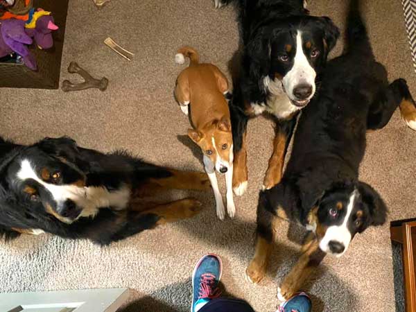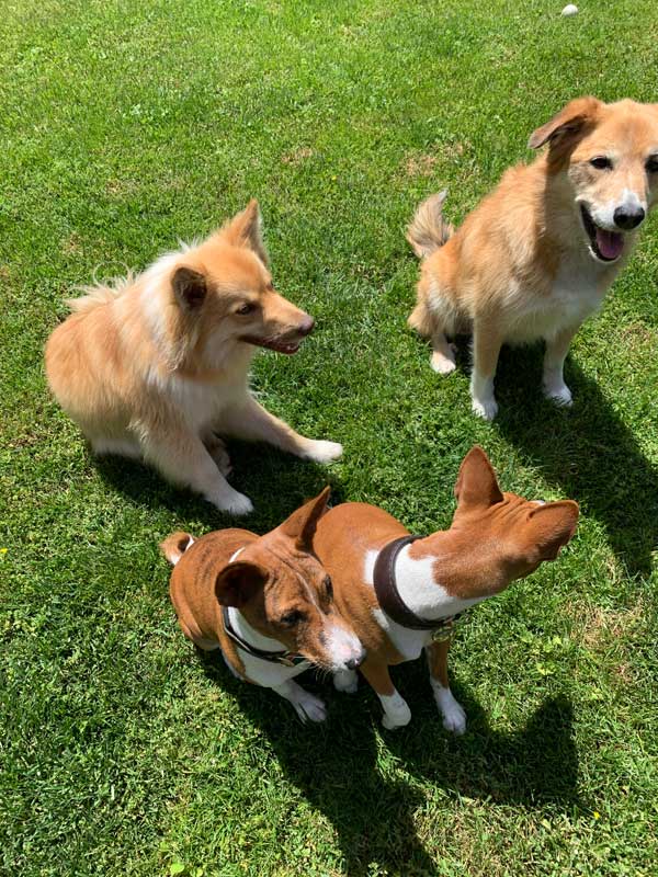 Practicing "sits' with friends - Sharky & Pjakkur Osenni, Leaf & Goldie.